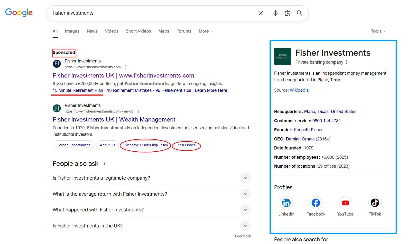 (How Fisher Investments pass the Google Test and that’s before the customer even visits their website)